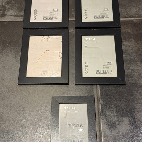 IKEA NYTTJA billedrammer 4 stk. , i sort. Rammene er rektangulære og egner sig til indramning af fotos, plakater eller små billeder. Velegnet til brug i hjemmet eller på kontoret, enten enkeltvis eller som en serie på væggen eller en hylde.10x 15 cm