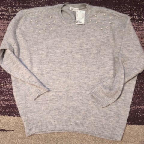 Strik fra name it, lys beige i størrelse 158/164 samt bukser fra Next, beige mønstrede i størrelse 164. Begge dele er blevet brugt en enkelt gang og kommer fra et røg, duft og dyrefrit hjem.