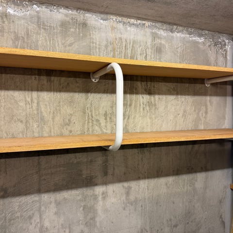 Reolsystem træ vægreol med skabe og skuffer. Systemet består af flere sektioner med åbne hylder, vitrineskab med glaslåger, lukkede skabe med fyldningslåger samt midterdel med skuffer. Velegnet til opbevaring af bøger, service og andre genstande i stue eller kontor. Monteres op ad væg og giver både åben og lukket opbevaring i samme møbel.