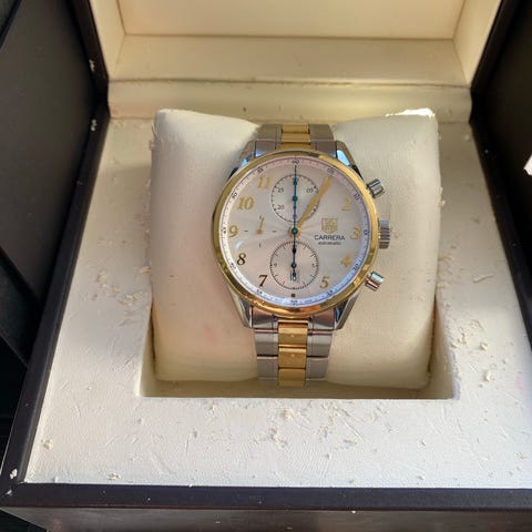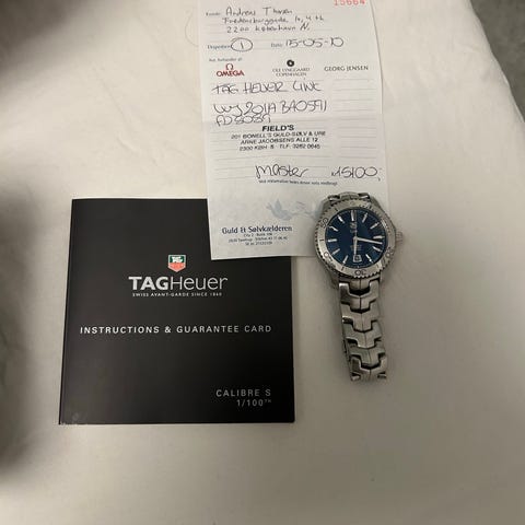 TAG Heuer herreur med rund urkasse, sort urskive og drejelig sort lynette. Uret har datoangivelse kl. 3 og tydelige timemarkeringer. Leveres med stållænke og foldespænde. Velegnet som klassisk armbåndsur til mænd i hverdagen og til mere formelle anledninger.