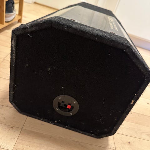 Sælger dette Pioneer UD-W302S kabinet, som står i perfekt stand. Det er et kompakt og robust kabinet beklædt med sort filt, der passer perfekt ind i de fleste biler. Designet med den skrå bagside (15 cm i toppen og 36 cm i bunden) gør, at den kan stå helt op mod bagsædet og spare plads.