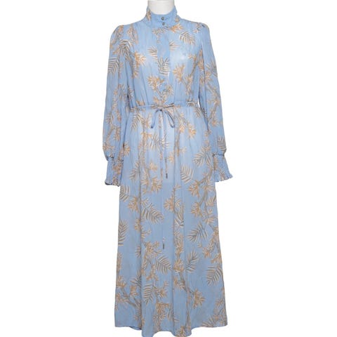 Refka sommerkjole i str. 42. Lang kjole i gul polyester med blomstret mønster. Kjolen har lange ærmer med elastik ved håndleddet og høj hals. Der medfølger bindebånd i taljen, som kan justeres efter behov. Velegnet som let sommerkjole til hverdag eller mere pæne anledninger.