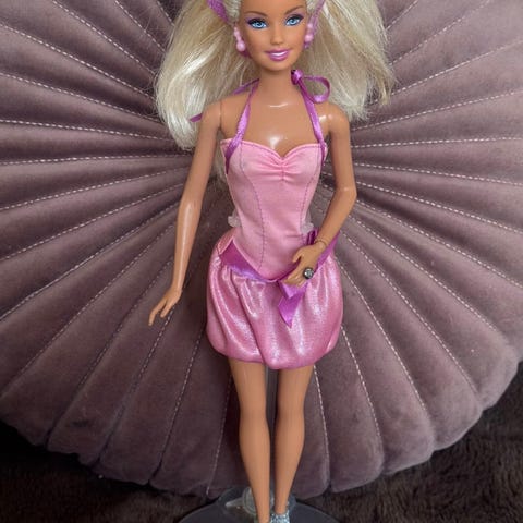 🎀 Vintage Barbie i fin sølv kjole - 40kr
