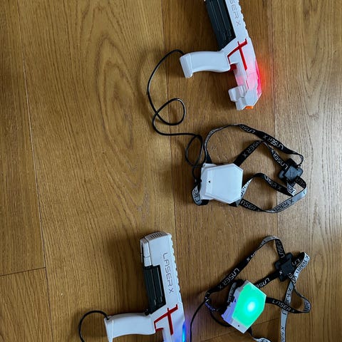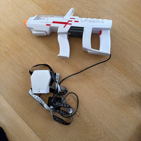 Sælger dette Laser X sæt, da vi ikke får det brugt. Det er testet og virker præcis, som det skal. Perfekt til leg i haven, i skoven eller indendørs – det er super sjovt for både børn og voksne.