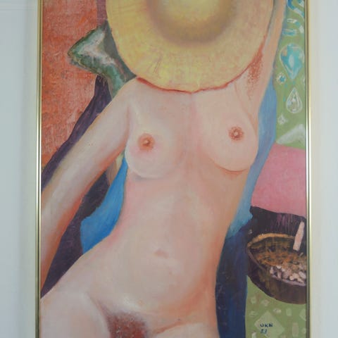 Oliemaleri, ukendt, motiv: Andet, stil: Realisme, b: 93 h: 114, L. A. Ring - Kalkemanden/hvidtemanden kalker/pudser huset. Udført i 1908. Per Nielsen pudser Ane Per Niels hus. Originalen findes på Statens Museum for Kunst. Dette er en vel udført kopi. Indvendige mål bred 75,8 cm. højde 96 cm. Uden signatur. Kunstner ukendt.