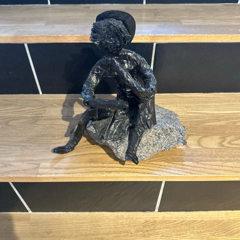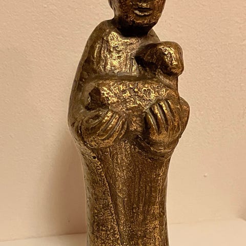 Skulptur i massiv bronze / mørk patina. H:13 Tung 1,7 kg - forestillende Maria med Jesusbarnet