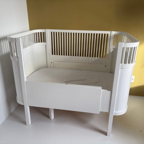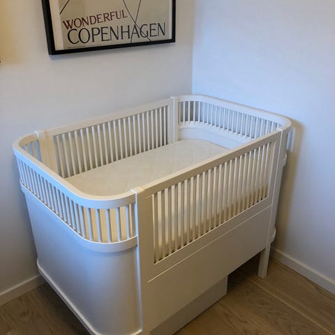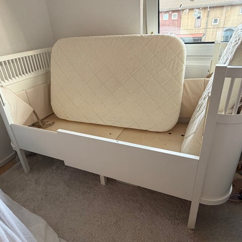 Tremmeseng med medfølgende original Sebra økologisk madras. Letter brugsspor (se billeder) men ellers i rigtig fin stand.
