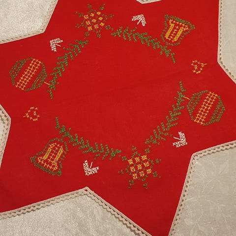 Retro 'folklore' dug. Måler 160x133 cm. Fra røg- og dyrefrit hjem.
