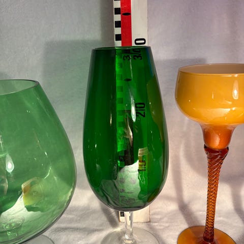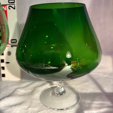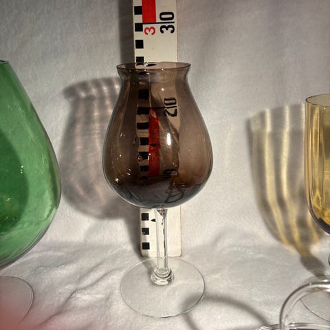 Stort / højt ravfarvet glas i perfekt stand og med spil / riller i glasset. Se venligst mål på foto