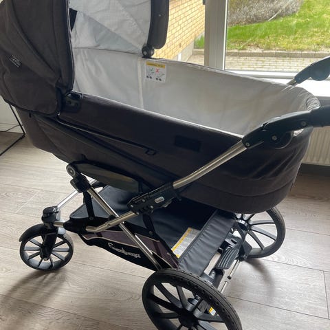 Emmaljunga barnevogn med madras og varekurv i rigtigt fint stand uden fugt, pletter eller rust.