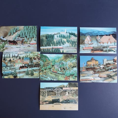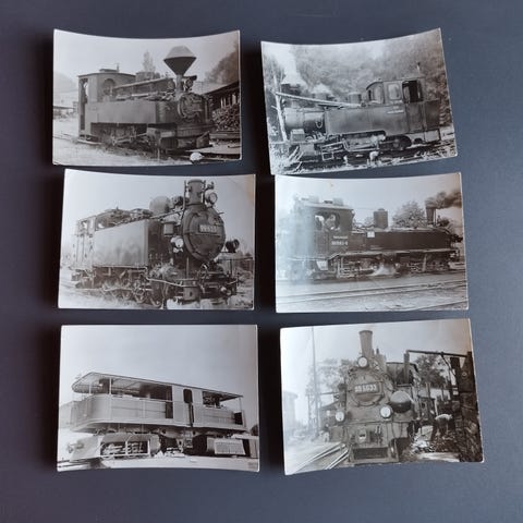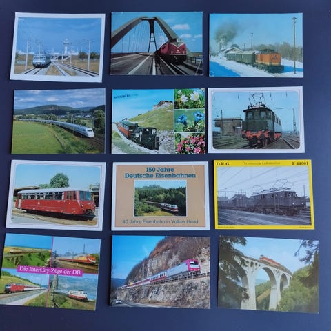 8 spændende tyske postkort med damplokomotiver og info på bagsiden.