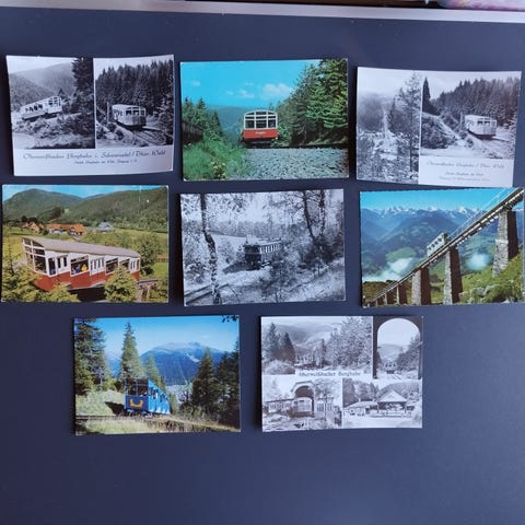 8 tyske postkort med damplokomotiver med info på bagsiden.