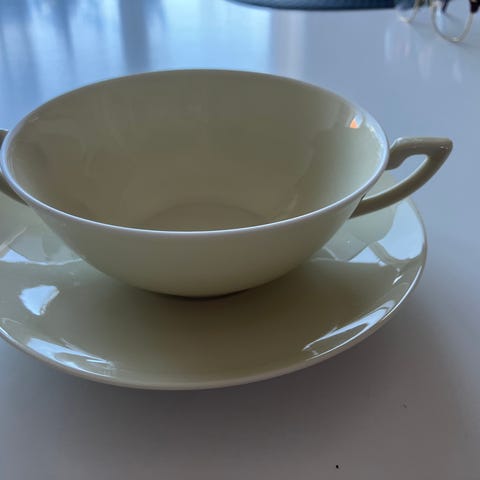 Royal Copenhagen kop med underkop hvid med gyldent mønster