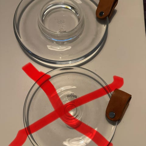 askebæger i klart glas med rund form. Dekoreret med koncentriske cirkler i flere farver i midten. Velegnet som askebæger eller lille skål til fx mønter eller småting. Designet har et grafisk, cirkulært mønster i midten af skålen.
