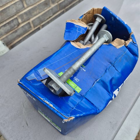 NKT vognbolte M8 x 100 mm i stål. Kassen indeholder 32 stk vognbolte bræddebolte varmforzinket med rund hovedform og møtrik på gevindenden. Velegnet til samling af træ- og stålkonstruktioner, hvor der ønskes gennemgående bolteforbindelser. Leveres i original NKT-kasse sammen med enkelte skiver og en lille nøgle, som vist på billederne.