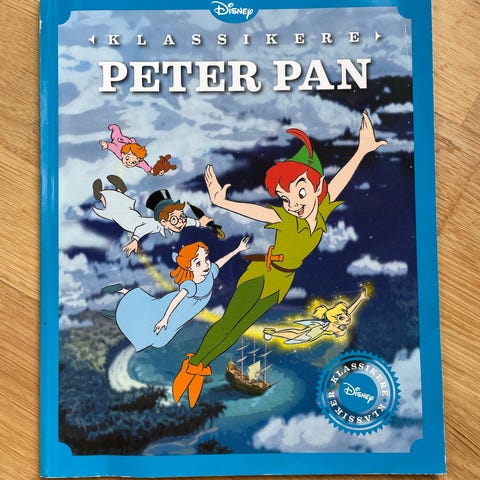 Disse billeder viser en samling af børnebøger med farverige omslag. Titlen på én af forsiderne er 'Peter Pan'. Bøgerne ser ud til at være hæftet og har forskellige farver, inklusiv blå, grøn, gul og lilla. De ser ud til at være en del af en serie eller samling.
