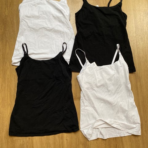 H&M ammetoppe str. XL. De er godt brugt og den hvide top har lidt misfarvning indvendigt, hvor barmen er. Deraf prisen. Dog stadig bløde og dejlige at have på.