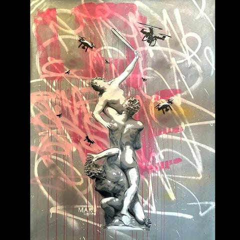 Malo præsenterer MARRY ME, en original samtidsmaleri fra 2026 i acryl på bomuldslærred med tuschpen, underskrevet foran, i farverne sort, hvid, orange og grøn, 110 cm høj og 160 cm bred, produceret i Tyskland og sælges direkte af kunstneren, i fremragende stand og med ægthedscertifikat. Klik på den blå "gå til varen" knap, for at købe eller byde på denne vare. Den samlede pris vil blive vist inden du afgiver dit bud.