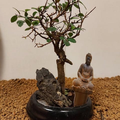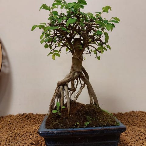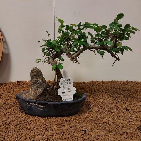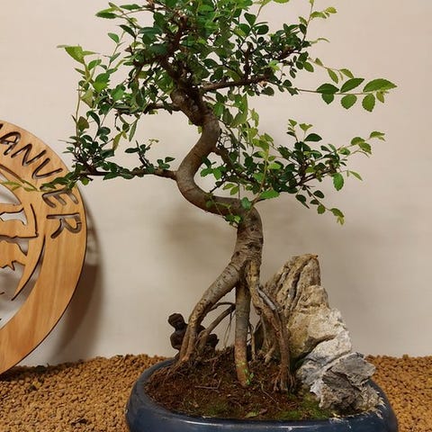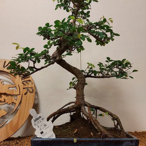 Zelkova-bonsai, også kaldet japansk elm, udstråler ro og forfining. Med sin fine forgrening, takkede blade og yndefuld form er den et symbol på balance og naturlig skønhed. Denne stærke og elegante træ ændrer sig med årstiderne, fra friskgrøn om foråret til varmt gyldent i efteråret.