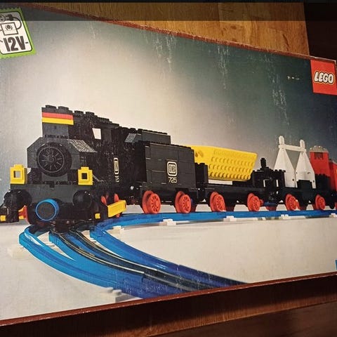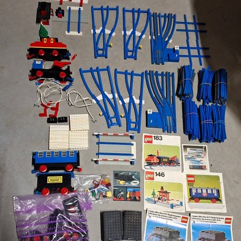 Et brugt LEGO-togssæt, der omfatter sæt 724, 727 og 126 med ekstra skinner og reservedele, fra 1960–1970 og oprindelse Danmark, leveret uden manual og uden kasse. Klik på den blå "gå til varen" knap, for at købe eller byde på denne vare. Den samlede pris vil blive vist inden du afgiver dit bud.