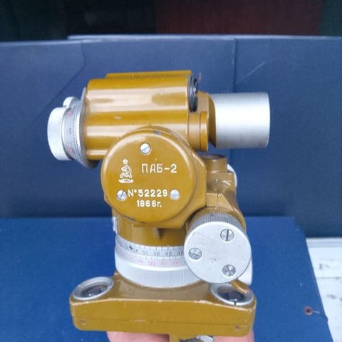 Glasset til vaterpasset mangler, og knappen til tandstangen i optikken på det lange rør, se billeder. Optikkerne i god stand.