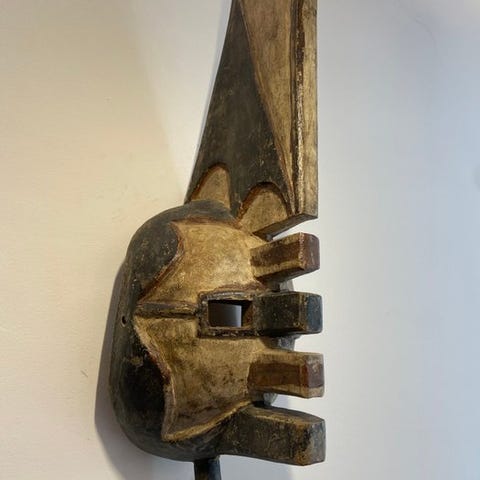 Máscara Bobo Oulé, en original maske fra Burkina Faso af Bobo-folket, 65 cm høj, fra midten af det 20. århundrede, officiel autenticitet, provenance Colección privada. Klik på den blå "gå til varen" knap, for at købe eller byde på denne vare. Den samlede pris vil blive vist inden du afgiver dit bud.
