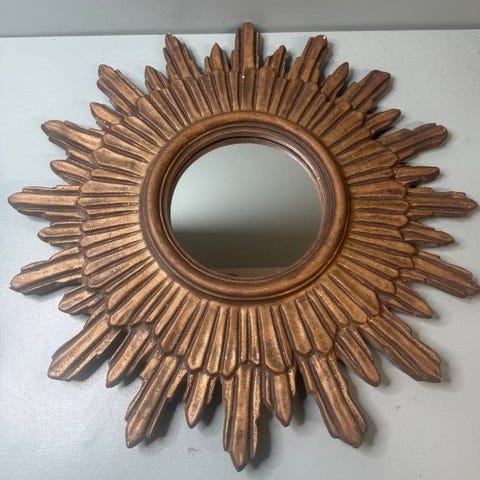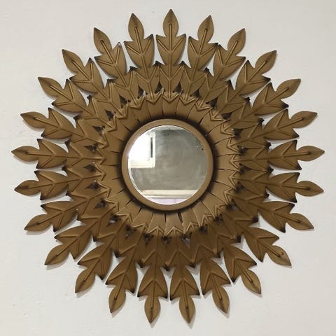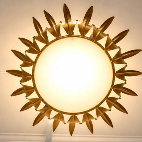 Loftlampe i soldesign / Retrobelyst vægspejl – Guldmetallisk – 1950'erne/60'erne