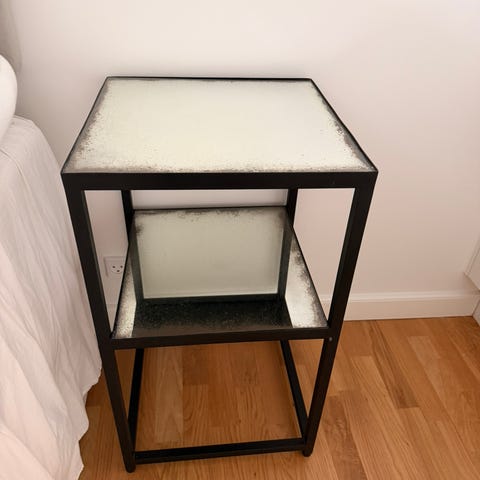 Dobbelt glasbordplade, natbordene er i brugt tilstand med enkelte brugsspor som vist på billedet.