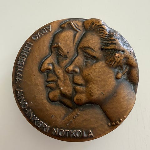 Stor bronzeplade, der afbilder plan over Frosinone og Lazio på højre side. Medaljistens efternavn.
