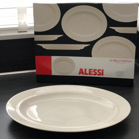 Alessi Recinto rektangulær serveringsbakke af spejlpoleret 18/10 rustfrit stål, designet af Alessandro Mendini, Italien, 2020+, 30 cm bred, 45 cm dyb, 3,5 cm høj, med integrerede sidehåndtag og dekoreret scalloped kant; ny og ubrugt med original emballage. Klik på den blå "gå til varen" knap, for at købe eller byde på denne vare. Den samlede pris vil blive vist inden du afgiver dit bud.