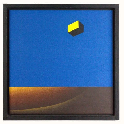 Abstrakt komposition, blandet teknik og collage på papir, underskrevet med blyant nederst til venstre. Værket fremviser en raffineret opbygning i vandrette planer, opnået gennem lagdeling af papirer af forskellig art, jordnære nuancer og kølige farveindsatser. Sproget er typisk for den abstrakte søgen efter anden verdenskrig, med en balance mellem kompositorisk strenghed og materiel følelse.