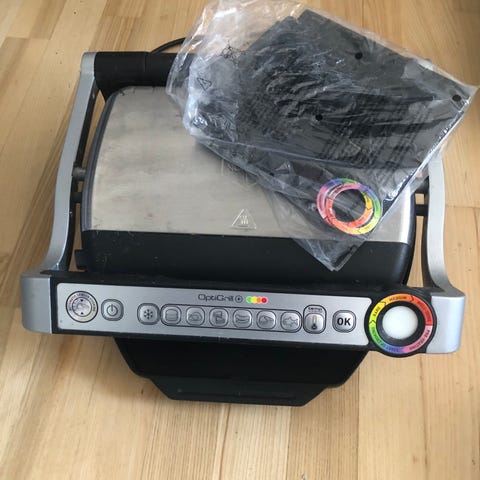 OBH Nordica OptiGrill kontaktgrill i sort. Elektrisk bordgrill med rillede grillplader og drypbakke til opsamling af fedt. Frontpanel med flere forudindstillede grillprogrammer og indikatorlys til tilberedningsniveau. Egnet til tilberedning af fx kød, grøntsager og sandwiches på køkkenbordet.