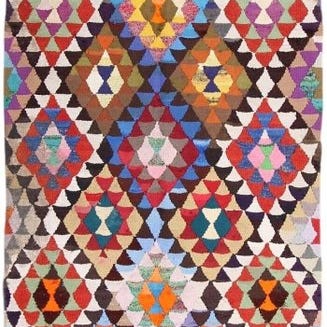 Et ældre vintaget armensk kelim-tæppe med klassisk og samtidig moderne design. Håndlavet stammekunst fra Kaukasus, perfekt til placering på gulvet eller som kunstdekoration i dit hjem eller kontor. Fremstillet af fin uld og naturlige farver, er dette armenske kilim i fremragende stand.