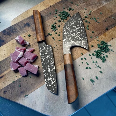 Vi er begejstrede for at præsentere et eksklusivt sæt på FIRE håndlavede japansk-stil knive fra en verdenskendt professionel samling – et must-have for kokke, samlere og friluftsentusiaster. Disse specialstøbte klingor, fremstillet med omhu, forener tidløs kunsthåndværk med enestående ydeevne og er dermed en værdifuld tilføjelse til ethvert royal køkken eller campingudstyr.