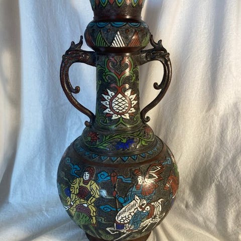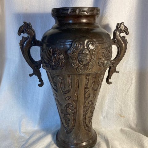 Stor antik japansk bronzehave fra Meiji-perioden (ca. 1850–1900) med mørk brun patina, mål 25 x 20 cm, vægt 2,48 kg, oprindelse Antiekmarkt, i god stand med mindre aldersrelaterede tegn. Klik på den blå "gå til varen" knap, for at købe eller byde på denne vare. Den samlede pris vil blive vist inden du afgiver dit bud.