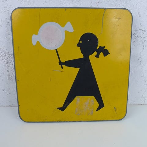 Tysklandproduceret emaljeret metaltrafikskilt med teksten '90 m' og diagonale røde varselsstreiber, originalt/officielt mærket med RAL Güte Verkehrszeichen, dateret 1960-1980, i god brugt stand med mindre tegn på alder og pletter; højden 100 cm, bredden 30 cm, tykkelse 0,3 cm. Klik på den blå "gå til varen" knap, for at købe eller byde på denne vare. Den samlede pris vil blive vist inden du afgiver dit bud.