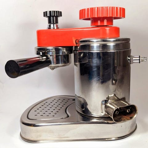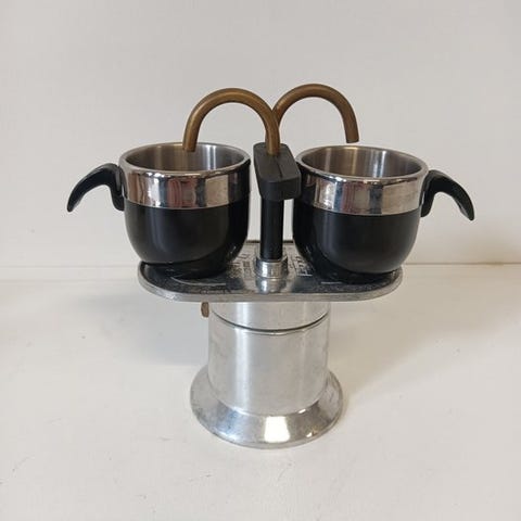 Kaffekande fra 1920/30… ny, aldrig brugt, komplet med strømkabel. Universal fremstillet i Milano på Via F. Reina 32 .... Kaffekande under damptryk, som det ses på billederne er der to udløsningspunkter, én til 6 kopper, én til 4 kopper. Kedlen i nikkellamineret messing, maskinens krop i kobber. Den fremstår elegant og raffineret, en maskine til samlere eller connaisseurs.