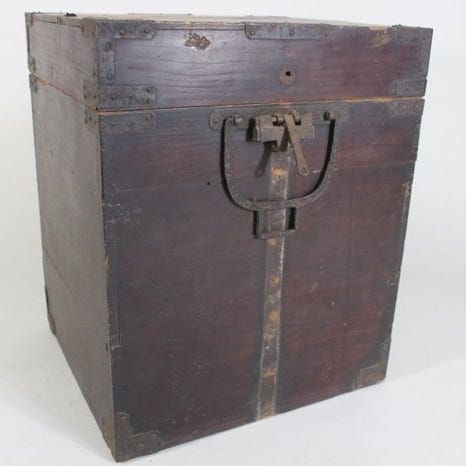 Japansk lakkeret suzuribako skriveredskabssæt fra sen Edo til tidlig Meiji, udsmykket med guld maki-e og samurai-slagt, Nashiji-indvendig, cirka 25 cm høj, 23 cm bred og 4,8 cm dyb, i fair brugt tilstand med aldersrelateret slitage og reparationer. Klik på den blå "gå til varen" knap, for at købe eller byde på denne vare. Den samlede pris vil blive vist inden du afgiver dit bud.
