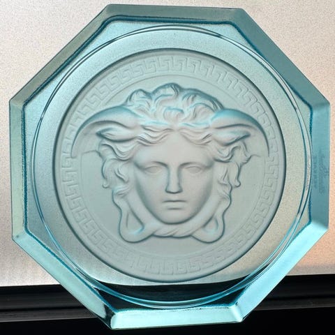 Papirvægt. Rosenthal møder Versace-kollektionen. Fantastisk “ Medusa papirvægt ”, designet af Versace, og fremstillet i “Lumière Crystal”, underskrevet af Versace og af Rosenthal