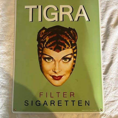 Skiltet kommer i den originale gamle vloeipapier emballage.