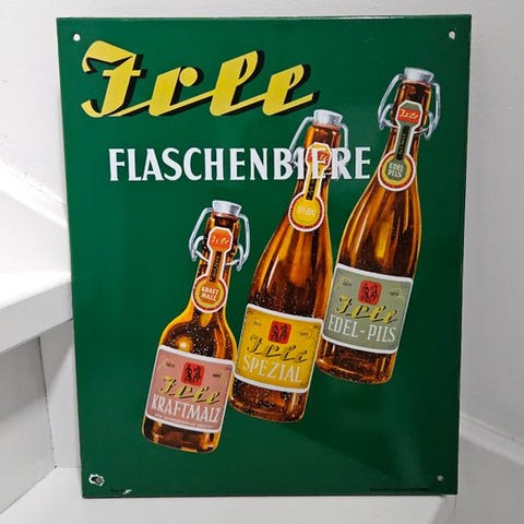 Original Bières Vedett emamljeret plade fra Belgien, fra 1990'erne/2000'erne, mål 65 x 20 cm, i fremragende stand med minimale slitage. Klik på den blå "gå til varen" knap, for at købe eller byde på denne vare. Den samlede pris vil blive vist inden du afgiver dit bud.