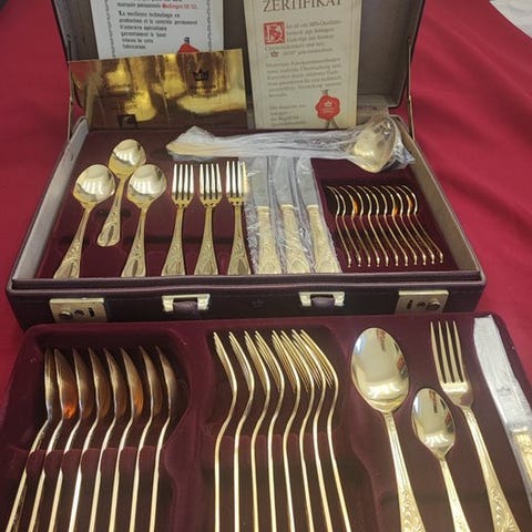 Wallace 18/8 Rustfrit stål Bestiksæt til 12 – 60 dele – Guldkantet to-tonet design.