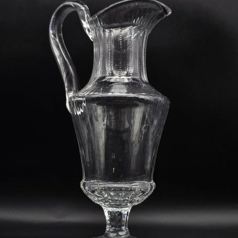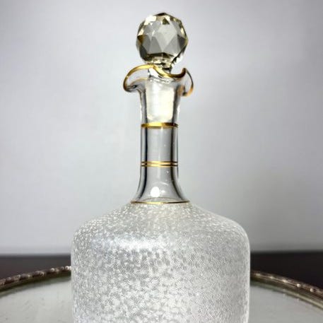 Sølvstrukturen fremhæver glasets gennemsigtighed og skaber et harmonisk spil af reflektioner og lys.