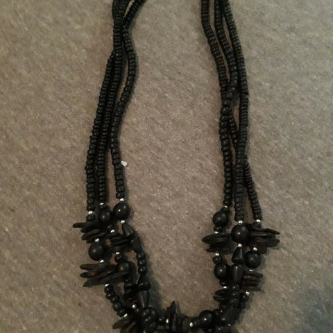 Flot sort halskæde med afrikanske træperler i flere rækker og længden