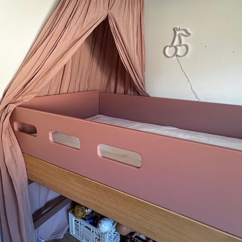 Egnet til børneværelse, hvor der ønskes ekstra gulvplads under sengen så der kan laves hule eller opbevaring.