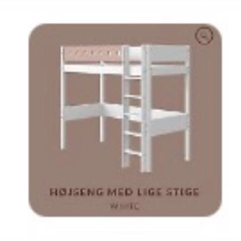 Sengehest, stige og madras medfølger. Der kommer to sæt ben med - både høje og lave. Den kan samles som både højseng og som lavseng, og stigen kan sættes i den side man ønsker.
