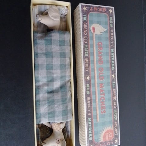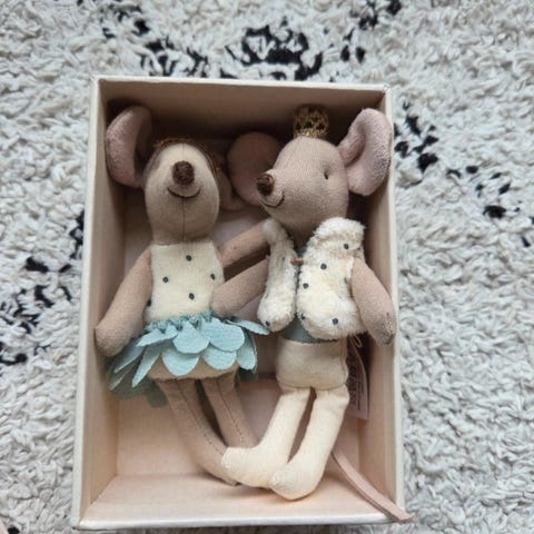 Sødt ældre musse par i fin cigaræske fra Maileg. De er brugt lidt og er gamle, men de er i virkelig flot stand og passet rigtig godt på.