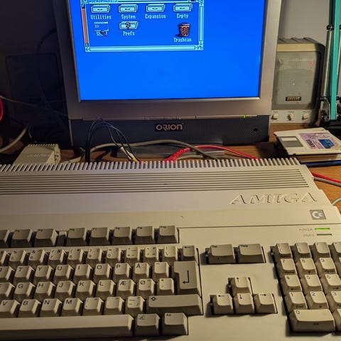 Inklusiv Amiga joystick adaptor med Commodore Amiga joystick, fantastisk at spille Amiga spil med rigtig Amiga joystick 🤩🇩🇰