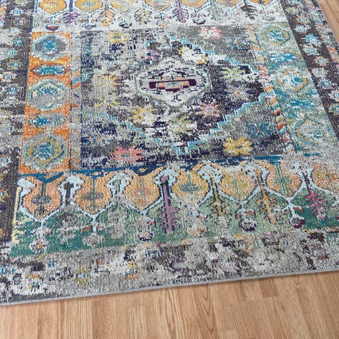 Rugvista tæppe i flerfarvet design med abstrakt mønster i nuancer af pink, rød, blå, lilla og gul. Rektangulær form egnet til placering under spisebord eller i stue. Velegnet til brug på trægulv eller andre hårde gulvtyper som dekorativt og lydabsorberende element i indretningen.