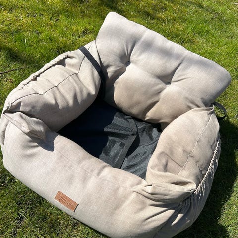 Ollipet Soft Journey bilsæde. Mærke Ollipet med god komfort. Købt i Cottonshoppen.dk. Har line til fastgørelse i hundens sele.Grå M: 50x45 cm. Ny pris 550kr.